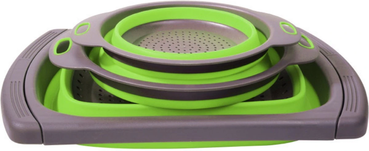 Buxibo – 3-Delige Keuken Vergiet Set Inklapbaar Groen/Grijs