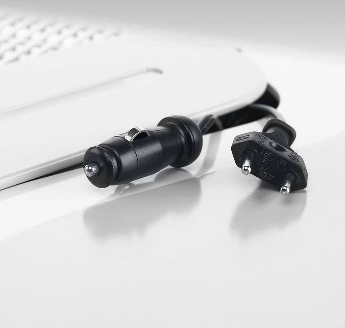 12 Volt DC, 230 Volt AC (220-240 Volt) / 50 Hz, geïntegreerde adapter