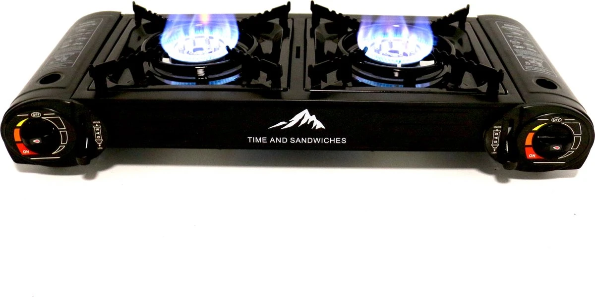 Dit is een zeer praktisch en compact dubbel gasfornuis met bakplaat.