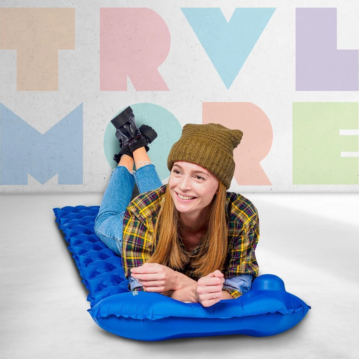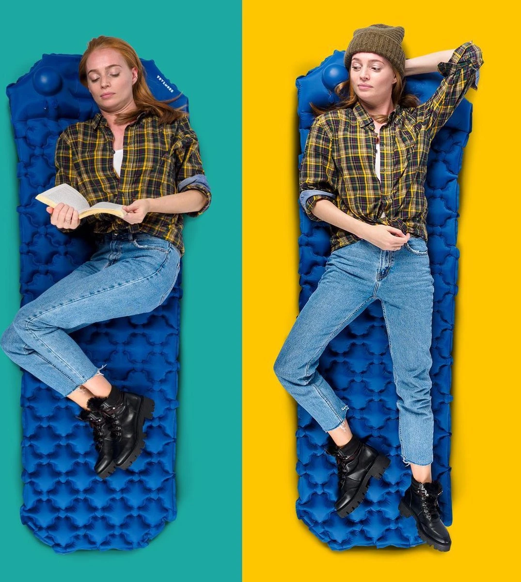 TRVLMORE Slaapmat – Zelfopblazend – 1 Persoons – Ingebouwde Pomp En Kussen – Blauw