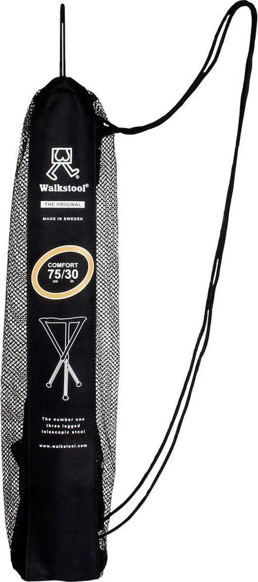 Aluminium driepoots vissersstoeltje van hoge kwaliteit. Extreem compact door de telescopische poten. Voorzien van een nylon zitting en rubber stoeldoppen. In twee hoogtes te verstellen. Afmetingen: zithoogte 44cm en maximale zithoogte 75cm. Gewicht: 1050 gram, maximaal draagvermogen: 250kg. Kleur: antraciet.